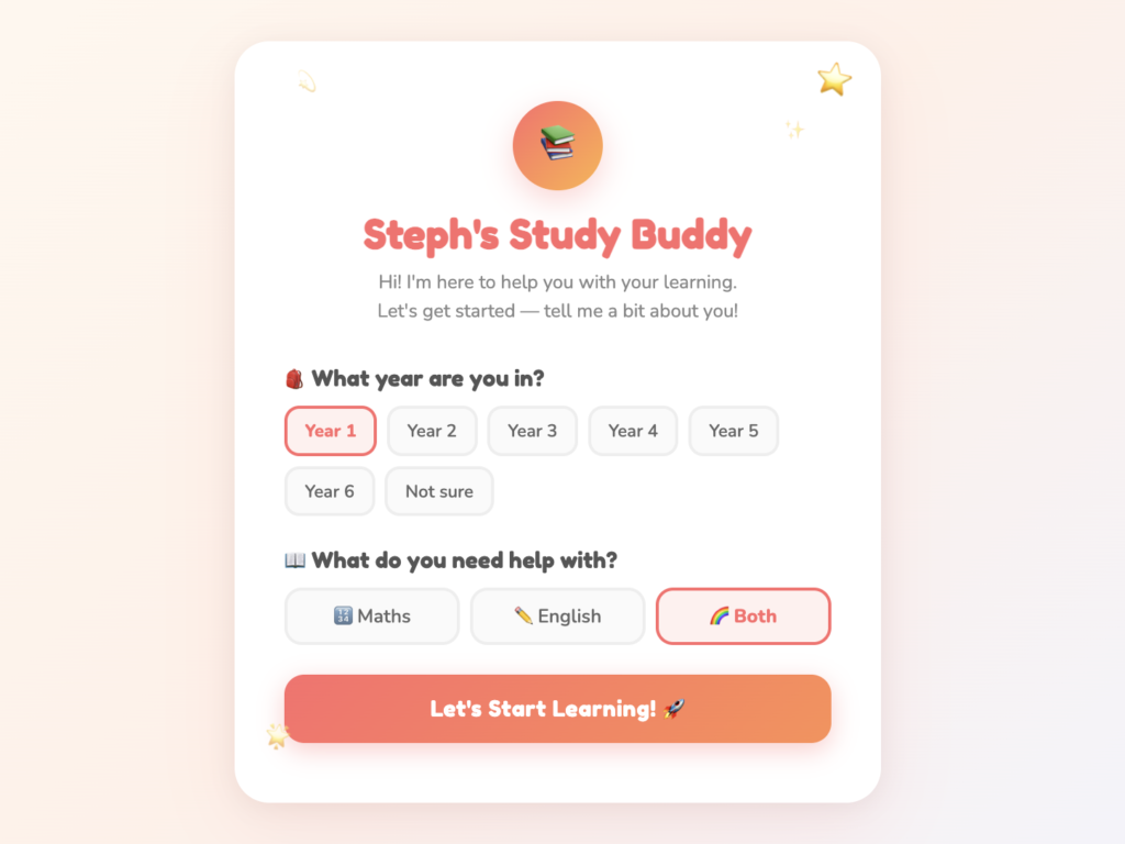 Steph’s Study Buddy – is a friendly AI tutor availiable to your child 24/7